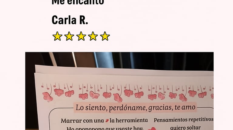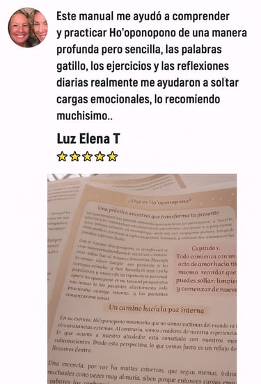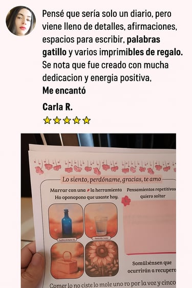 Diario inspirado en la sabiduría ancestral del Ho’oponopono. Cada página ha sido diseñada para acompañarte en el proceso de limpiar memorias dolorosas, y soltar cargas emocionales.